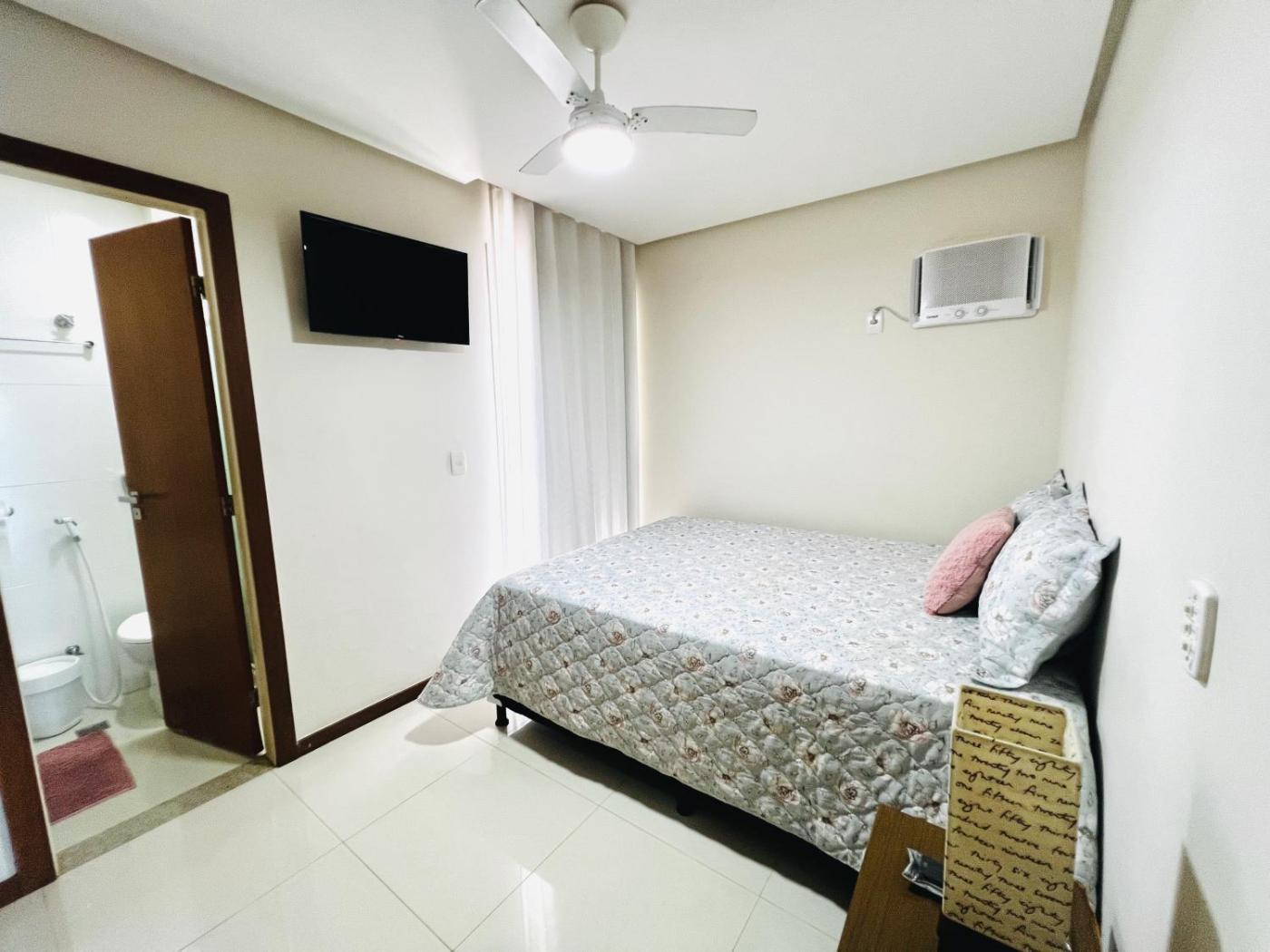 Set in Guarapari, 800 metres from Morro Beach and 1.4 km from Raposa Island, Apartamento frente mar na Praia do Morro - 3 quartos com 1 suíte, ar condicionado e enxoval premium offers a private beach area and air conditioning. This beachfront property offers access to free WiFi and free private parking. The accommodation offers a lift and full-day security for guests.