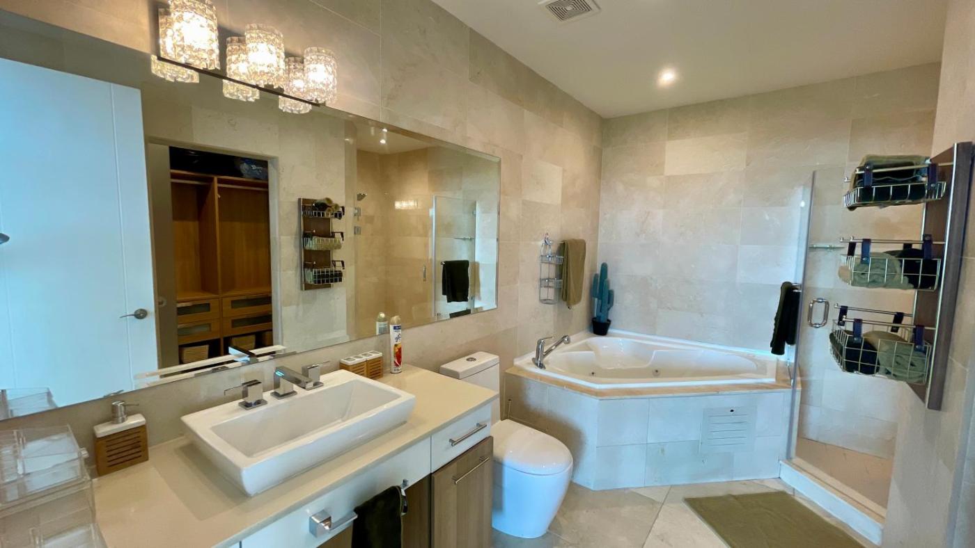 Two-Bedroom Apartment. This apartment boasts a pool with a view and a hot tub. This spacious apartment consists of 1 living room, 2 separate bedrooms and 2 bathrooms with a walk-in shower and a bath. Guests will find a stovetop, a dishwasher, kitchenware and an oven in the well-equipped kitchen. The apartment also offers a barbecue. The air-conditioned apartment provides a flat-screen TV with streaming services, a washing machine, a tea and coffee maker, a dining area as well as sea views. The unit offers 2 beds.