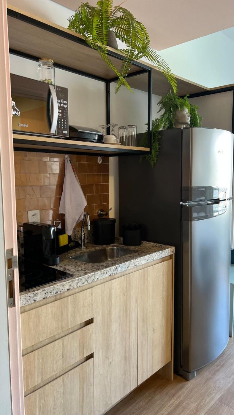 In the centre of Sao Paulo, Charmoso studio no centro de São Paulo features garden views from the terrace. This apartment offers air-conditioned accommodation with a balcony. The accommodation features a shared kitchen and full-day security for guests.